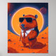 Modernes, sonniges Plakat mit einer Capybara auf dem Planeten Mars mit Anzug und Sonnenbrille auf dem Rücken. Einzigartige Wohngestaltung mit gedruckter oder digitaler Download-Druckoption.