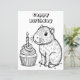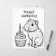 Cute coloring page with a with a cute capybara and a cupcake with the silly pun "Cappy Birthday."