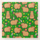 Capybara Sketch mit Frühlingsblumen auf Grün Glasuntersetzer