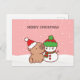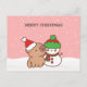 Verbringen Sie Weihnachtsjubeln mit dieser schönen Urlaubspostkarte, mit einer lieblichen Capybara in einer Weihnachtsmannmütze und einem freundlichen Schneemann in einem Winterkostüm. Die weiße und rosa Schneekulisse schafft ein gemütliches Ambiente, um Ihre Weihnachtsgrüße so niedlich wie möglich zu versenden.