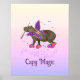 Ein süßes und lustiges Design mit einem bezaubernden Capybara-Feenkind, das einen Zauberstab im Mund hält, umgeben von funkelnden Sternen. Sie trägt modische rosa Schuhe. Diese spielerische und traumhafte Illustration ist perfekt für Mädchen, die magische Tiere und Feen-Vibes lieben.