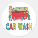 Car Washing Design zeigt die Autoreinigung durch zwei erfahrene Autowäscher. Der eine verwendet einen Druckschlauch, um Grim zu reinigen, der andere verwendet einen altmodischen Schwamm, Seifenwasser und harte Arbeit.