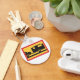 Eine Ikone eines Autos, das eine Karawane schleppt. Dieses Design wirkt auf diesem Schlüsselanhänger wirklich effektiv