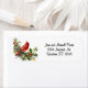 A bright red cardinal is perched among evergreens, holly, and berries on this beautiful return address label. Perfect for anyone who likes birds and nature.