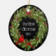 This ceramic ornament is shown with a festive Christmas holiday berry wreath and cardinal bird print.