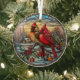 Cardinals on Snowy Branch with Holly Ornament Aus Glas