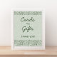 Direct guests with this elegant Cards & Gifts bridal shower poster from the Her Next Chapter book-theme collection. Designed in a soft sage green palette with delicate floral ornaments, it features a warm handwritten-style font and a layout that looks beautiful framed for a polished display. Perfect for book-themed bridal showers, literary celebrations, and thoughtfully styled gift tables.