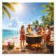 A vibrant Caribbean beach scene filled with warmth, culture, and community. Locals and tourists gather by the shoreline, cooking together in a shared pot as the sun shines brightly overhead. Surrounded by golden sand, sea shells, swaying coconut trees, and birds gliding across blue skies, this artwork celebrates island life, unity, and the joy of shared traditions. A perfect piece for coastal décor, tropical lovers, and anyone drawn to the heart and soul of the Caribbean.