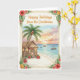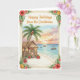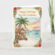 Celebrate the season with a tropical twist! This 'Happy Holidays from the Caribbean' greeting card blends festive cheer with island charm. Featuring a serene beach sunset, a cozy hut adorned with wreaths and bows, and a palm tree strung with colorful lights, it captures the warmth of the holidays in paradise. Surrounded by hibiscus flowers, pineapples, and palm leaves, the design offers a vibrant and unique way to send seasonal greetings.