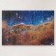 Diese Landschaft der "Berge" und "Täler", die von glitzernden Sternen gesprenkelt sind, ist eigentlich der Rand einer nahen, jungen, sternenbildenden Region namens NGC 3324 im Karina-Nebel. Dieses im Infrarot-Licht vom neuen James Webb Space Teleskop der NASA erfasste Bild zeigt erstmals unsichtbare Bereiche der Sterngeburt. Webbs scheinbar dreidimensionales Bild mit dem Namen "Cosmic Cliffs" sieht aus wie knackige Berge auf einem mondbeleuchteten Abend. In Wirklichkeit ist es der Rand des riesigen, gasförmigen Hohlraums innerhalb NGC 3324, und die höchsten "Gipfel" in diesem Bild sind etwa 7 Lichtjahre hoch. Der Höhlenbereich wurde aus dem Nebel durch die intensive UV-Strahlung und die Sternwinde aus extrem massiven, heißen, jungen Sternen in der Mitte der Blase, oberhalb des Bereichs, der in diesem Bild gezeigt wird, geschnitzt. Die bläserne, ultraviolette Strahlung der jungen Sterne bildet die nebulanische Wand, indem sie sie langsam ausgehöhlt. Dramatische Pfeiler ragen über der leuchtenden Gasmauer und widerstehen dieser Strahlung. Der "Dampf", der aus den himmlischen "Bergen" zu steigen scheint, ist eigentlich heiß, ionisiertes Gas und heißer Staub, der durch die unerbittliche Strahlung aus dem Nebel strömt. Webb enthüllt aufkommende stellare Kinderzimmer und einzelne Sterne, die komplett in Sichtlichtbildern verborgen sind. Aufgrund der Empfindlichkeit von Webb gegenüber Infrarotlicht kann es durch kosmischen Staub schauen, um diese Objekte zu sehen. Protostellarstrahlen, die sich in diesem Bild deutlich abzeichnen, schießen aus einigen dieser jungen Sterne heraus. Die jüngsten Quellen erscheinen als rote Punkte im dunklen, staubigen Bereich der Wolke. Objekte in den frühesten, schnellen Phasen der Sternenbildung sind schwer zu erfassen, aber die extreme Empfindlichkeit, räumliche Auflösung und Bildbefähigung von Webb können diese schwer fassbaren Ereignisse abzeichnen. Diese Beobachtungen von NGC 3324 werden den Prozess der Sternbildung beleuchten. Die Sterngeburt breitet sich im Laufe der Zeit aus, ausgelöst durch die Ausbreitung der Erosionshöhle. Während sich der helle, ionisierte Felgen in den Nebel bewegt, drückt er langsam in Gas und Staub. Befindet sich auf der Felge ein instabiles Material, wird der erhöhte Druck das Material zum Kollaps bringen und neue Sterne bilden. Umgekehrt kann diese Art der Störung auch die Bildung von Sternen verhindern, da das sternförmige Material ausgehöhlt wird. Dies ist eine sehr heikle Balance zwischen funkelnder Sternenbildung und deren Beendigung. Webb wird einige der großen, offenen Fragen der modernen Astrophysik ansprechen: Was bestimmt die Anzahl der Sterne, die sich in einer bestimmten Region bilden? Warum bilden sich Sterne mit einer bestimmten Masse? Webb wird auch die Auswirkungen der Sternenbildung auf die Evolution gigantischer Gas- und Staubwolken aufzeigen. Während der Effekt massiver Sterne - mit ihrem heftigen Wind und ihrer hohen Energie - oft offensichtlich ist, ist der Einfluss der zahlreicheren Sterne mit niedriger Masse weniger bekannt. Während sie sich bilden, erzeugen diese kleineren Sterne schmale, gegensätzliche Jets, die hier gesehen werden, die den Wolken viel Schwung und Energie verleihen können. Dies reduziert den Anteil des nebeligen Materials, das neue Sterne ernährt. Bis zu diesem Zeitpunkt hatten Wissenschaftler nur sehr wenige Daten über den Einfluss der Vielzahl junger und energetischer Niedrigststerne. Mit Webb können sie eine vollständige Zählung ihrer Anzahl und ihrer Auswirkungen im gesamten Nebel erhalten. Die rund 7.600 Lichtjahre entfernte NGC 3324 wurde von Webb’s Near-Infrared Camera (NIRCam) und Mid-Infrared Instrument (MIRI) aufgenommen. NIRCam - mit seiner knackigen Auflösung und unvergleichlichen Empfindlichkeit - enthüllt hunderte von bisher verborgenen Sternen und sogar zahlreiche Hintergrundgalaxien. Aus Sicht von MIRI leuchten junge Sterne und ihre staubigen, planetenbildenden Scheiben hell in der Mitte des infraroten und erscheinen rosa und rot. MIRI enthüllt Strukturen, die in den Staub eingebettet sind, und entdeckt die stellaren Quellen massiver Ströme und Abflüsse. Mit MIRI leuchten der heiße Staub, die Kohlenwasserstoffe und andere chemische Verbindungen auf der Oberfläche der Bergrücken, was das Aussehen gezackter Felsen verleiht. NGC 3324 wurde 1826 erstmals von James Dunlop katalogisiert. Von der südlichen Hemisphäre aus gesehen, befindet es sich an der nordwestlichen Ecke des Carina Nebula (NGC 3372), der sich in der Sternbild Carina befindet. Der Carina-Nebel ist Zuhause zum Keyhole Nebel und der aktive, instabile Superriese Eta Carinae.