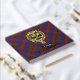 Clan Carnegie Wappen Abzeichen umgeben von einem Gurt und Schnalle über Tartan Hintergrund. Benutzerdefinierter Vorder-, Rücken- und Rückentext.