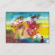 Farbenfrohe, skurrile, musikalische abstrakte figurative Aquarellmalerei mit Tanzfiguren, Musikern, lebhaften Karnevalskostümen, gefiederten Masken in leuchtendem Rosa, Fuchsia, grün, rot, blau, gelb, inspiriert aus Comedy of Art (Commedia dell'arte ), italienischen Masken und dem Venezianischen Karneval .