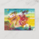 Farbenfrohe, skurrile, musikalische abstrakte figurative Aquarellmalerei mit Tanzfiguren, Musikern, lebhaften Karnevalskostümen, gefiederten Masken in leuchtendem Rosa, Fuchsia, grün, rot, blau, gelb, inspiriert aus Comedy of Art (Commedia dell'arte ), italienischen Masken und dem Venezianischen Karneval .
