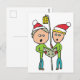 Xmas Carol Singing design features two Christmas carol singers sharing sheet music and a light. They wear Xmas hats and will be appearing at your front door for Xmas carol singing and general carolling festive tidings!