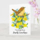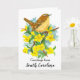 Eine leere Grußkarte, die mit einem Carolina-Wren-Vogel auf einem blühenden, gelben Jessmine-Blumenstrauß illustriert mit Tinte und Aquarell dekoriert ist. Inspiriert durch den Staat Vogel und Staat Blume von South Carolina. Sie können den Text nach Ihren Wünschen bearbeiten oder entfernen.