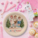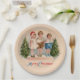 Teller aus Papier mit einer altmodischen Weihnachtslandschaft von Kindern, die eine tolle Party Dekoration machen.