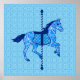 Digitale Darstellung eines klassischen Karussels in gemischten Mustern, in gemischten Medien, mit einem arabesken gekachelten Hintergrund - dunkles Kobaltblau, himmelblau und weiß