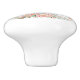 This ceramic cabinet knob is shown in white with a cute carousel horse art print.