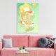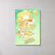 Leinwand mit zwei Karpfen koi in Wasser Lilie Teich Illustration. Grün, Gelb, Orange und Gold.