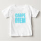 Typografisches Design von Carpe Diem mit abstrakten Wellen. Blue Carpe Diem Shirt.