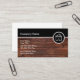 Designvorlage für Visitenkarten von Zimmerleuten, die mit simulierter Holzkornkunst als Hintergrund auf der Vorderseite gedruckt wurde, und einfaches Textlayout, das Sie online anpassen können, inklusive eines Haussymbols und Emblems für Zimmermann, Schrankmacher oder Küchen- und Badezimmerumbauservice.