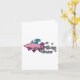 Ein Cartoon Alien Raumschiff, das Rauch bläst. Dieses Design sieht auf dieser Grußkarte wirklich effektiv aus