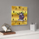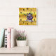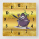 Cartoon Aubergine mit großen Augen grünes Haar Quadratische Wanduhr