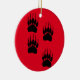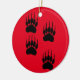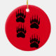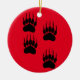 Niedlicher Cartoon-Stil Bärenpaw-Drucke. Benutzerdefinierte Keramik-Ornamente mit rotem Hintergrund. Weihnachtsdekoration