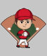 Eine niedliche Abbildung eines jungen Baseballspielers im Stil eines Cartoon, der mit einer passenden Kappe in roter Uniform gekleidet ist. Der Charakter hält einen Baseball in beiden Händen, stehend selbstbewusst auf einem Baseballfeld-Hintergrund. Dieses Design eignet sich perfekt für Baseball-Produkte, Aufkleber oder Sportbekleidung, die sowohl für Kinder als auch für Sportfans geeignet sind.