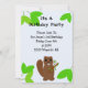 Viele grüne Pflanze und ein Cartoon Biber mit großen Zähnen und einer Menge Zweige und Äste in seinen Pfoten belegen diese Geburtstagseinladung. Passen Sie mit allen gewünschten Informationen an.
