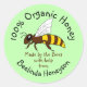 Eine niedliche Honigbiene aus Cartoon schmückt dieses Label für hausgemachten Bio Honig.