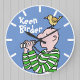 Uhr für einen Vogelbeobachter. Cartoon Vogelbeobachter mit Ferngläsern hat einen Vogel stehend auf dem Kopf! Birdwatcher Uhr.