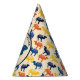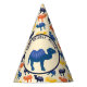 Feiern Sie Geburtstage und andere besondere Events im Stil dieser Party-Hüte, die im Stil eines Cartoon eine Darstellung eines Bactrian Kamels oder Kamels mit zwei Mittelblüten vor einem wüstenfarbenen sandfarbenen Hintergrund mit einer eigenen personalisierten Botschaft und einem überwältigenden Kamelmuster in Blau, Orange und Gelb darstellen.