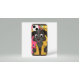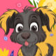 Ein niedlicher Cartoon-Hund vor einem lebendigen, blumigen Hintergrund!