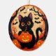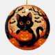 Cartoon Cat und Pumpkins unter Vollmond Keramik Ornament