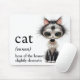 Niedliche Katze mit einer eleganten Perlenhalskette, abgeschieden auf Weiß, mit der Definition einer Katze in fett formatiertem Text.