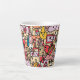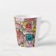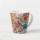 Cartoon Charakter handgezeichnete Toss Muster Latte Tasse. Farbenfrohe Muster mit verschiedenen lustigen und lustigen handgezeichnet Charakteren. Ideal für Kinder und Jugendliche.