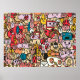 Cartoon Charakter Hand Drawn Toss Muster Poster. Farbenfrohe Muster mit verschiedenen lustigen und lustigen handgezeichnet Charakteren. Ideal für Kinder und Jugendliche.