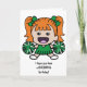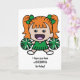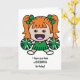 Niedliche Karte feiert einen Geburtstag auf fröhliche Art und Weise. Es zeigt ein niedliches Cartoon mit einem grünen Anführerkleid. Sie können den Text sowohl vorne als auch innen anpassen.