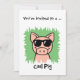 Einfach die Einladung zum Geburtstag von Jungen anpassen! Cartoon Clip Kunst mit einem lächelnden rosa Schwein mit coolen Sonnenbrillen. Er hat seine Schattierungen und ein großes Grin.