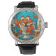 Cartoon Crab Reading in Underwater-themed Bathroom Armbanduhr
