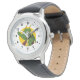 Kinder Edelstahluhr mit schwarzem Lederarmband