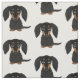 Schwarz und Tan Langhaarige Dackel Hundemuster Stoff. Original Gemusterte Stoffe für Dackel Liebhaber. Vergnügen für Ihr nächstes Nähprojekt, ideal für originale handgemachte Geschenke für Dackel Liebhaber. Besuchen Sie Jenn's Doodle World für noch mehr Hundegewebe und Tiergeschenke.