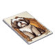 A cheerful spiral notebook featuring a fluffy cartoon dog sitting proudly in front of its cozy doghouse. Surrounded by playful bone motifs, this design adds warmth and personality to your notes, journaling, or gift giving — perfect for dog lovers and pet parents alike.