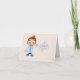 Cartoon Arzt gekleidet in seinem weißen Mantel und Schuppen, blau "Danke" Typografie auf der Vorderseite und Vorlage Text in der Karte. Hintergrund.