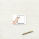 Cartoon einer Hand, die eine Anmerkung hält Post-it Klebezettel