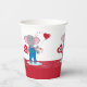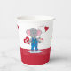 Adorable rot-weiße Papiertassen mit einem Cartoon Elefanten, der einige hübsche Blume hält, und einem Herzballon . Ideal für ein Party am Valentinstag oder eine Babydusche . Finden Sie die passenden Teller und Servietten . © ArianeC Illustrations-Alle Rechte vorbehalten