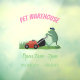 Ein lustiger grüner Frosch, der den Rasen im albernen Cartoon-Stil mäht.
