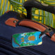 Fun luggage tag for kids featuring a fishing brown bear . Personalize it with the child's name .