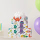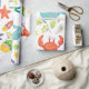 Niedliche farbenfrohe Cartoon Meerestiere über weißem Hintergrund. Fisch, Krabben, Oktopus, Seestern. Anpassbare Papiervorlage